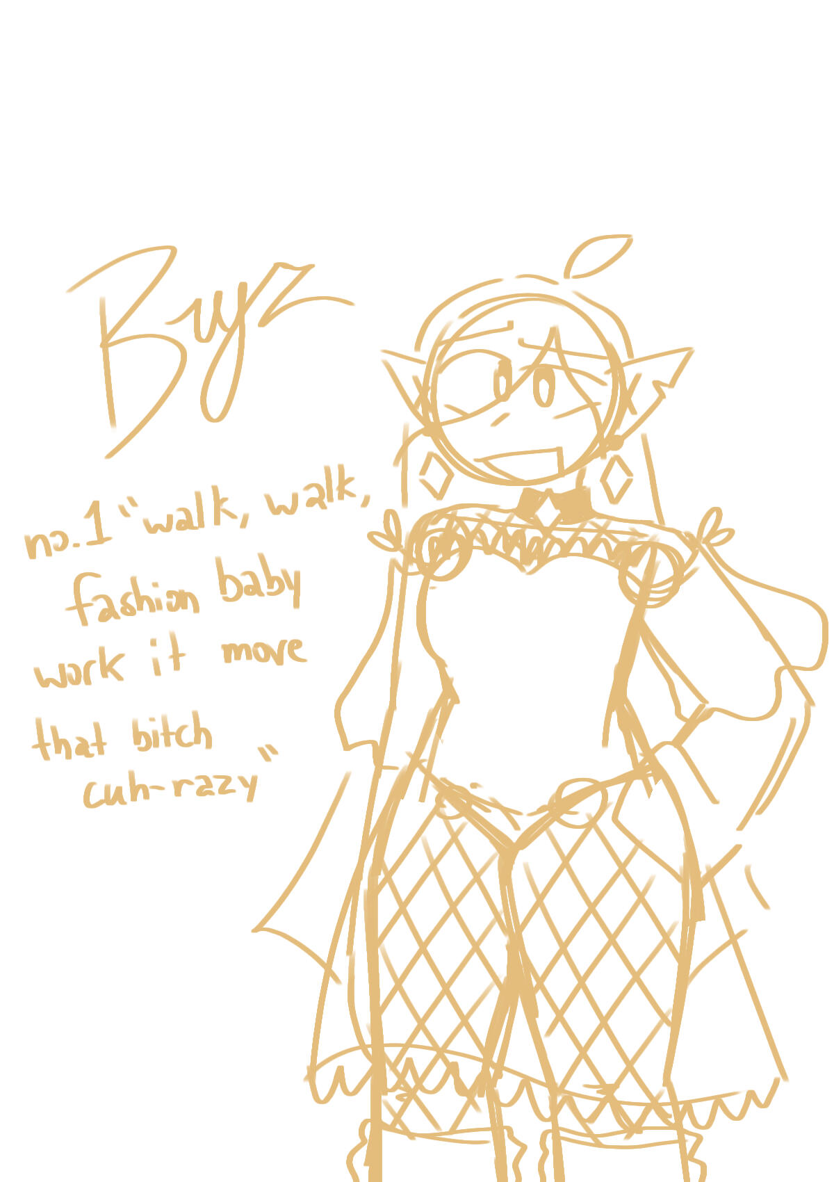 Bryz's first design has many similarities with her canon design, but the most notable changes are probably her necklace and the face mask. Originally, Bryz was going to be a germaphobe, but once I developed the idea of the plot I decided to scrap it. (It didn't really fit her personality anymore, anyways.)