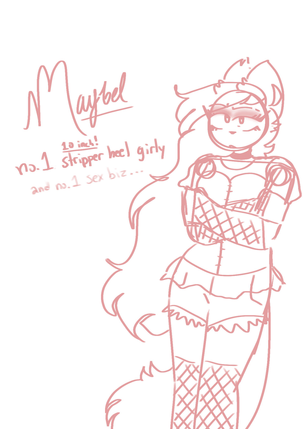 Maybel is 5'5" (165.1 cm). Her skin is pale and covered in small scratches and abrasions. She has brunette hair that falls down to her thighs. She has light grey cat ears and a tail. Her eyes are green-ish grey/hazel. She wears a red shirt, jean shorts, and a corset. She wears fishnets across her arms and legs. She wears 10 inch red stripper heels.Other: Maybel has intense paranoia. She often masks to cover it up, so only her closest friends know about it. She also has a little shtick where she'll grunt as a response instead of talking.First Appearance: We see Maybel tending to her gas station when she gets a phone call from Casey.