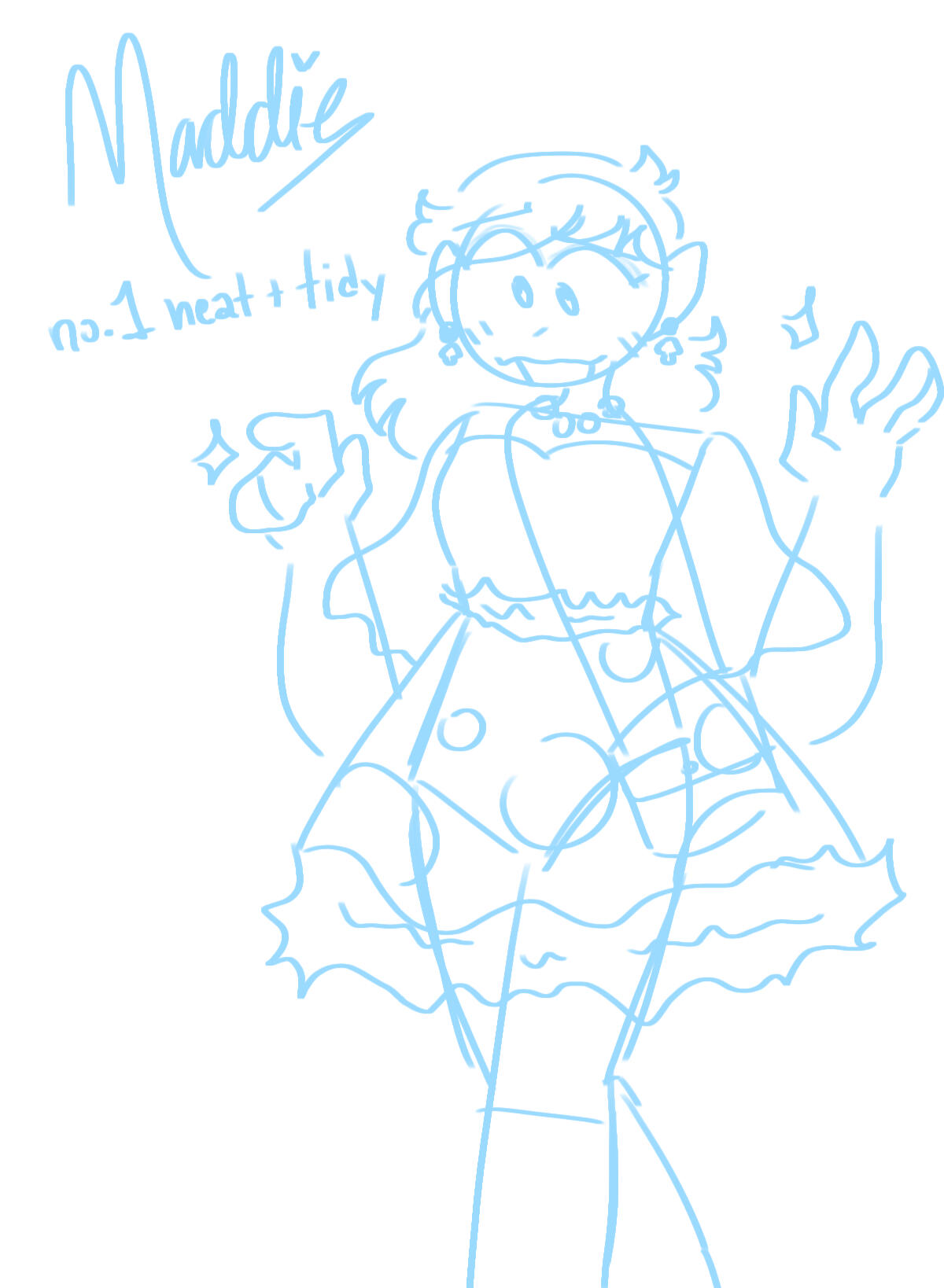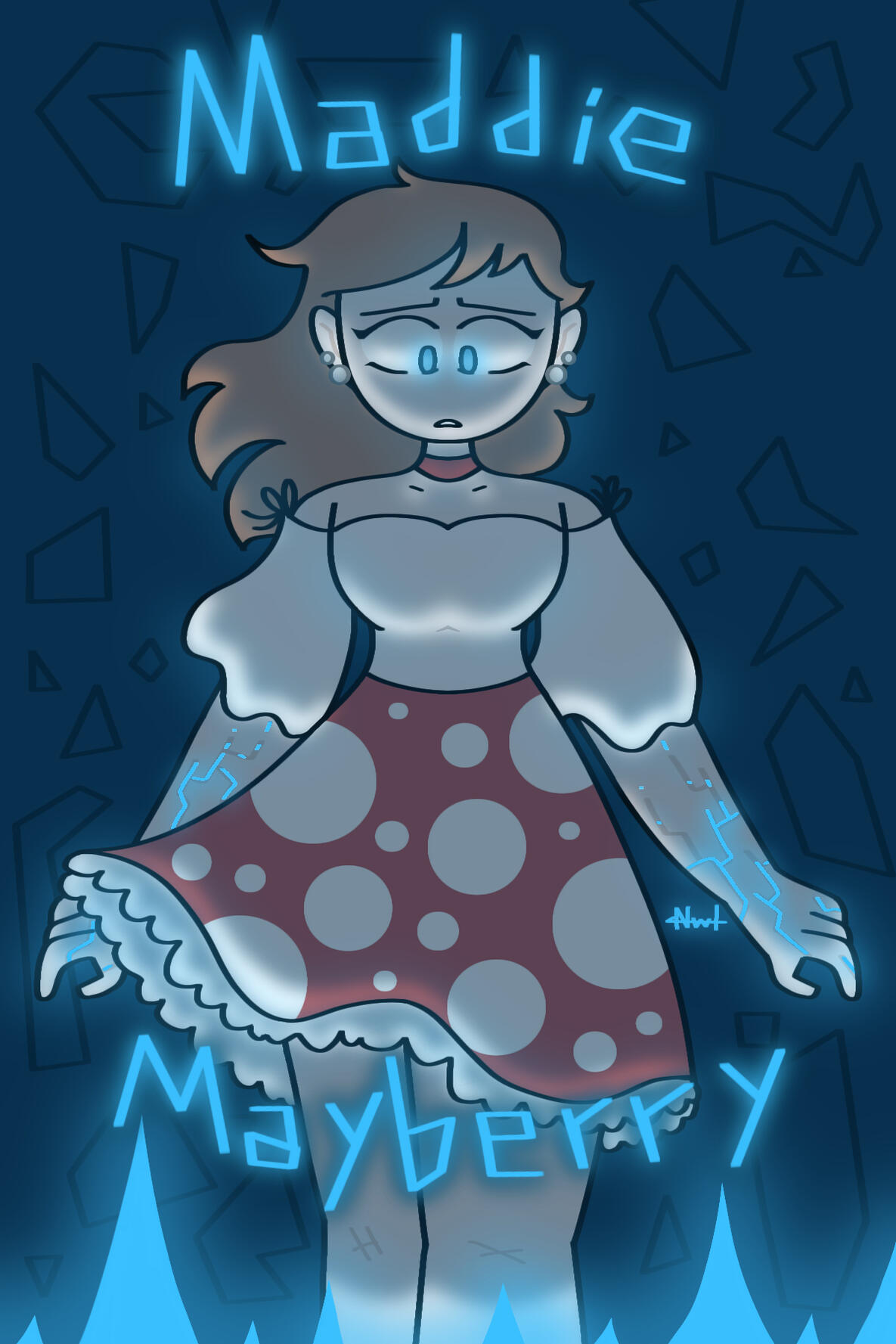 Maddie is 5'4" (162.56 cm). Her skin is pale and light (similar to her sister's) and has jagged scars lining her arms from her hands to her elbows. Her hair is dirty blonde and is cut short, falling down to her shoulders. Her eyes are blue-ish grey. She wears a shoulder-less white top with pirate sleeves. She wears a skirt made to resemble a red and white mushroom, which is very poofy (but very flexible!). She wears a red velvet choker (not pictured). She also has mushroom earrings that match her skirt.Other: Maddie has OCD and Autism. She chose to practice magic in her teens, and her parents were very supportive of her decision. She doesn't have many people that she considers close friends, but she is fairly well known in her work.First Appearance: Casey and Maybel visit Maddie's apartment to repair Casey's broken ankle.