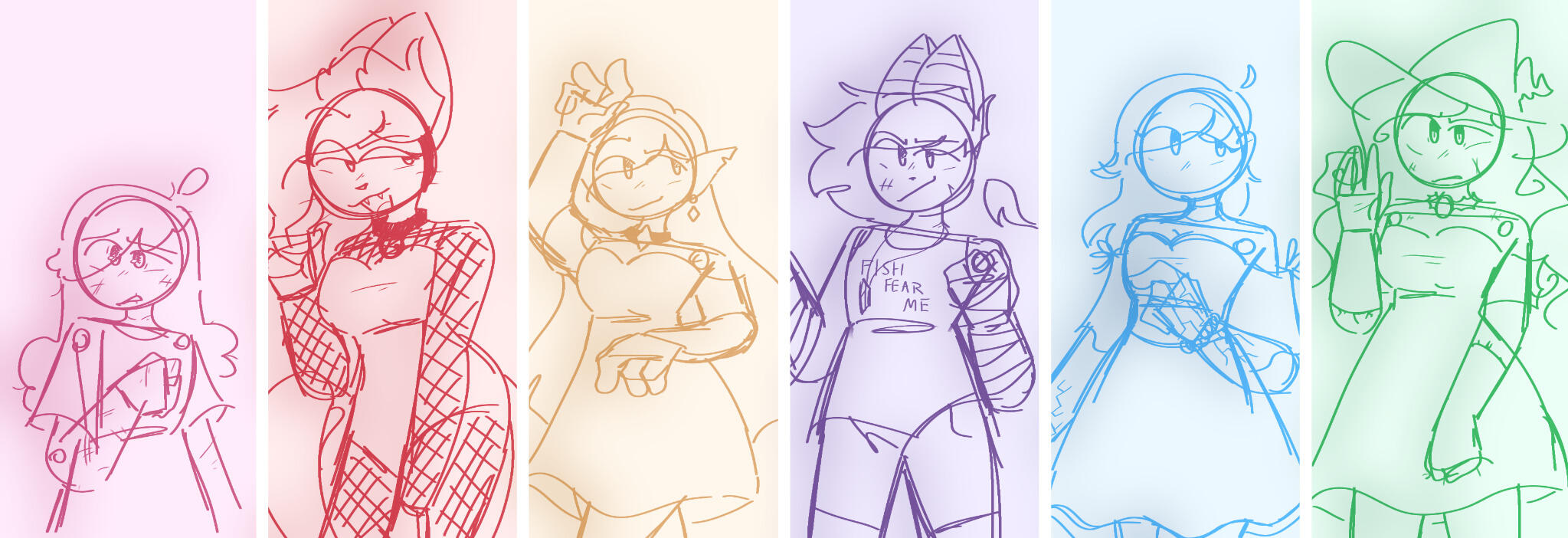Those with little to no planning may not have a designated color yet, and are what I'll refer to as "Grey Arcs." Grey Arcs are not developed enough to be considered fully canon and their nicknames may change as development occurs.