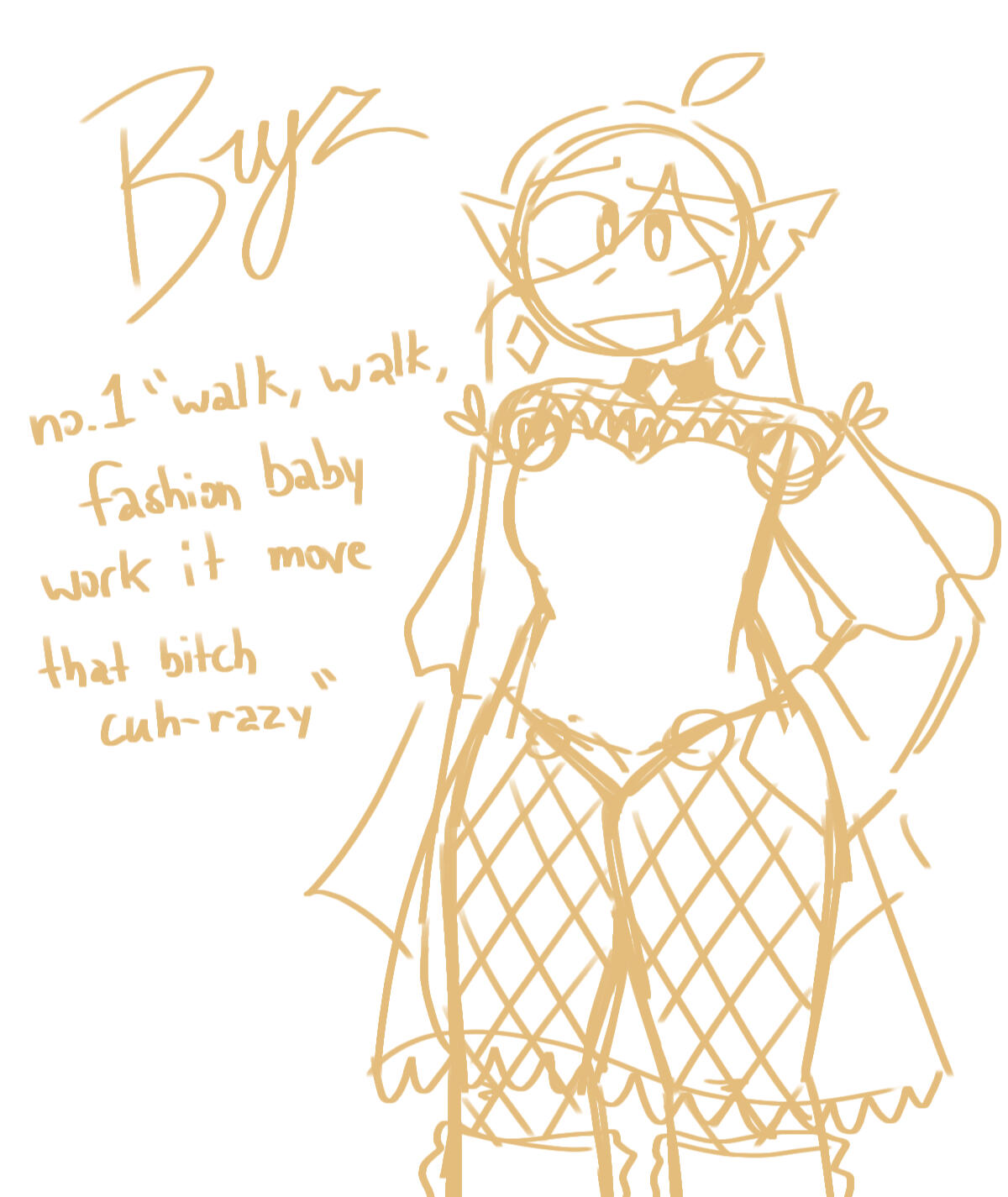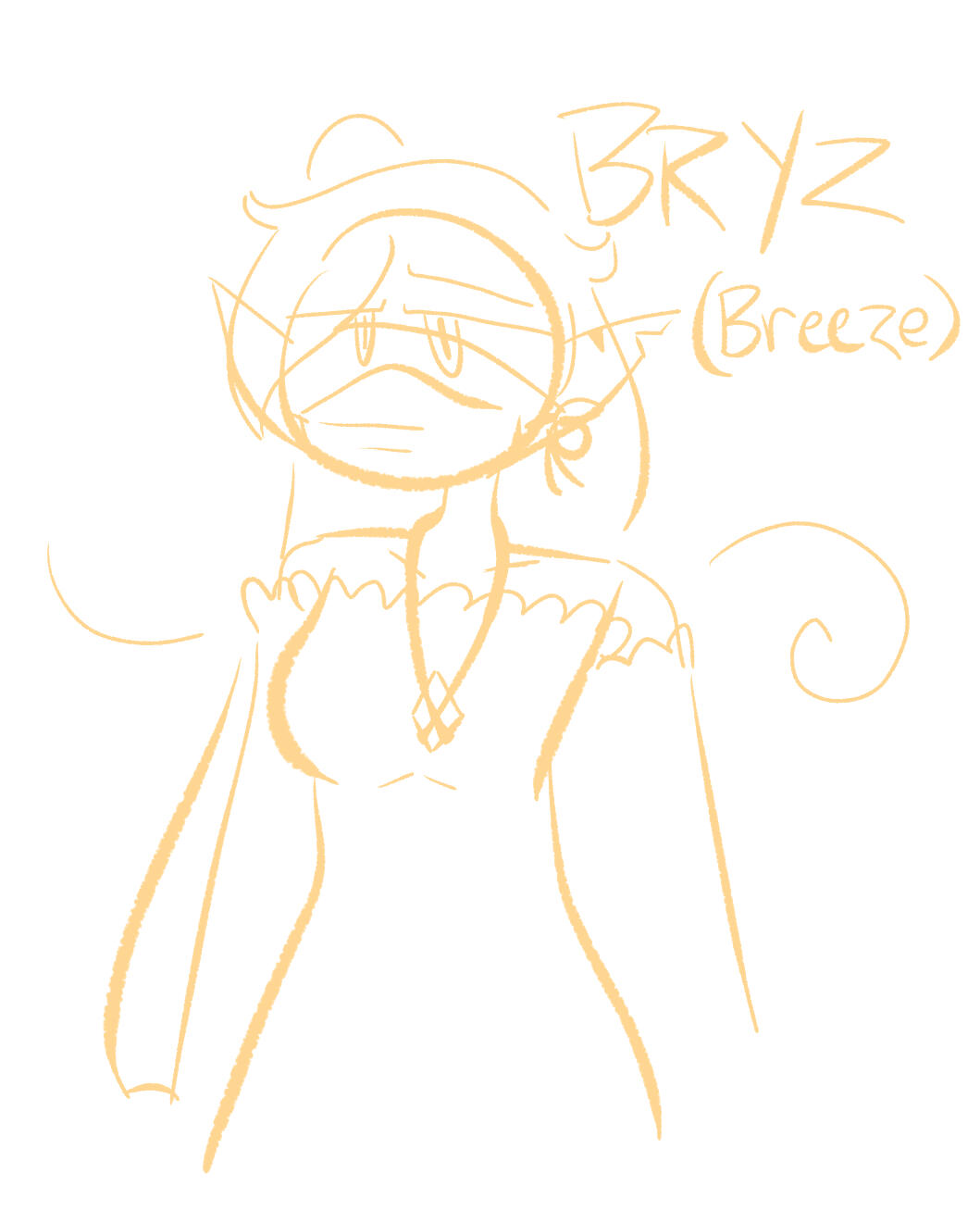 Bryz's first design has many similarities with her canon design, but the most notable changes are probably her necklace and the face mask. Originally, Bryz was going to be a germaphobe, but once I developed the idea of the plot I decided to scrap it. (It didn't really fit her personality anymore, anyways.)